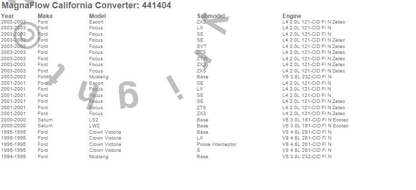 Below is an abreviated list of applications for the Universal California OBDII Compliant Catalytic Converter.