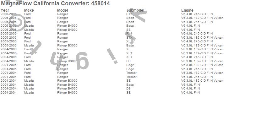 Below is an abreviated list of applications for the Universal California OBDII Compliant Catalytic Converter.
