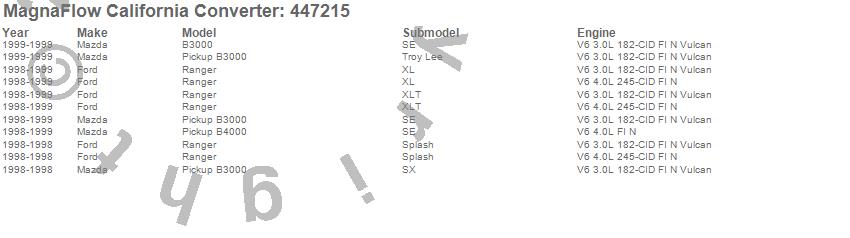 Below is an abreviated list of applications for the Direct Fit California Catalytic Converter.