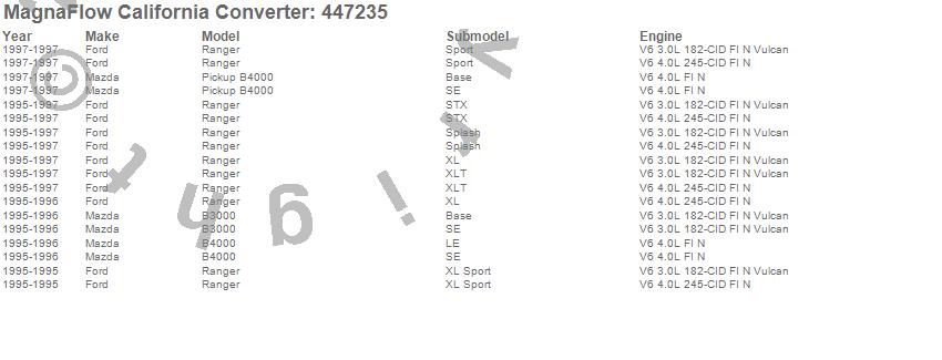 Below is an abreviated list of applications for the Direct Fit California Catalytic Converter.