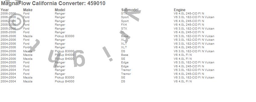 Below is an abreviated list of applications for the Direct Fit California Catalytic Converter.