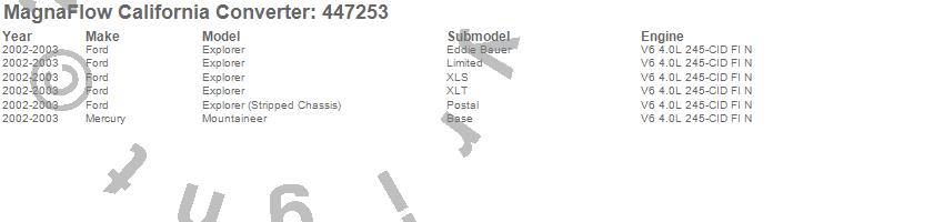 Below is an abreviated list of applications for the Direct Fit California Catalytic Converter.