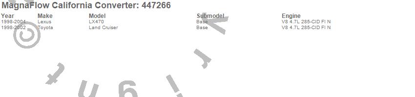 Below is an abreviated list of applications for the Direct Fit California Catalytic Converter.