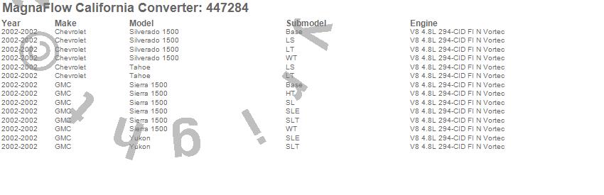 Below is an abreviated list of applications for the Direct Fit California Catalytic Converter.