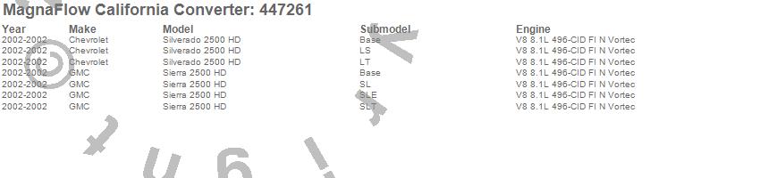 Below is an abreviated list of applications for the Direct Fit California Catalytic Converter.