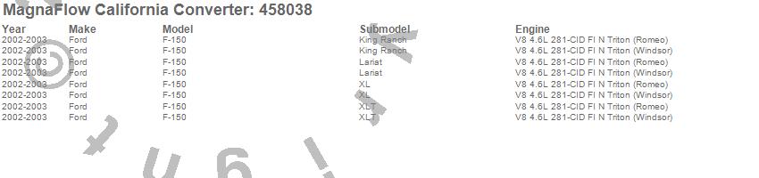 Below is an abreviated list of applications for the Direct Fit California Catalytic Converter.