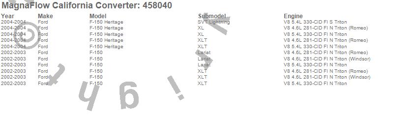 Below is an abreviated list of applications for the Direct Fit California Catalytic Converter.