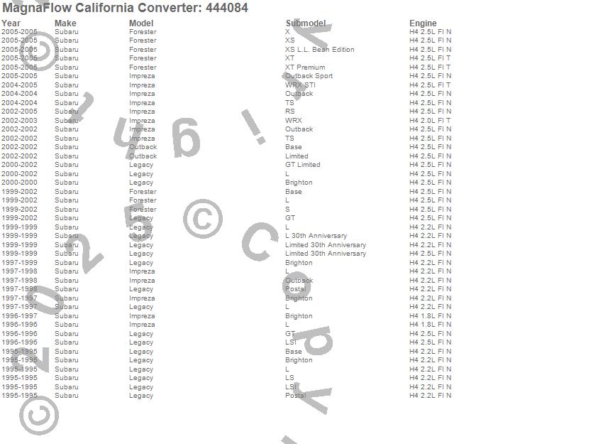 Below is an abreviated list of applications for the Universal California Catalytic Converter.