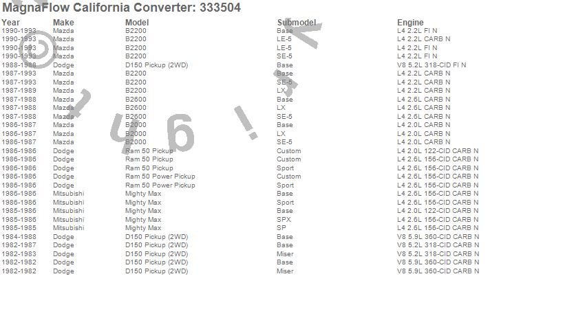 Below is an abreviated list of applications for the Universal California Catalytic Converter.