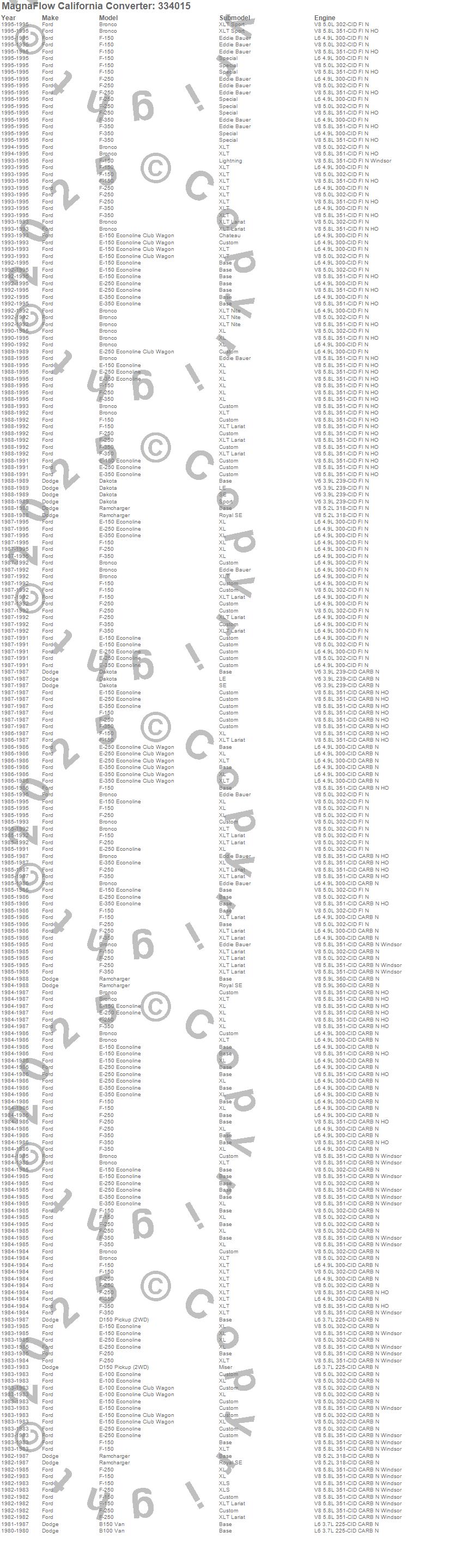Below is an abreviated list of applications for the Universal California Catalytic Converter.
