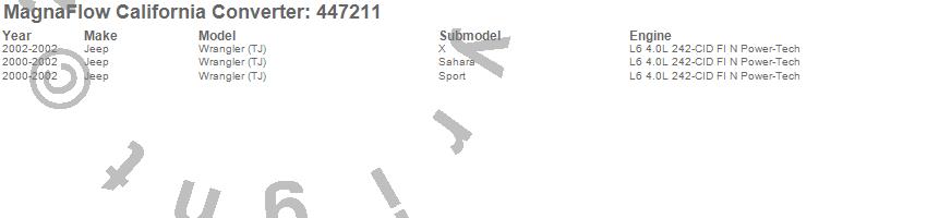 Below is an abreviated list of applications for the Direct Fit California Catalytic Converter.