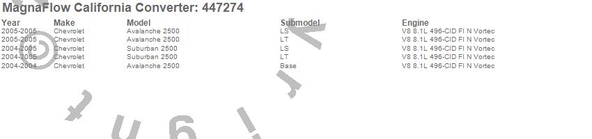 Below is an abreviated list of applications for the Direct Fit California Catalytic Converter.