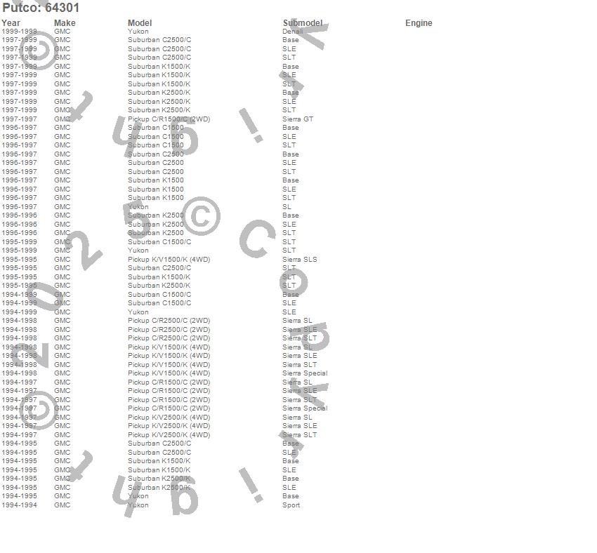 C1500, C1500 Pickup, C1500 Suburban, C2500 Pickup, C2500 Suburban, K1500, K1500 Pickup, K1500 Suburban, K2500 Pickup, K2500 Suburban, K2500 Suburban (Canadian), Yukon, GMC, 1999, 1998, 1997, 1996, 1995, 1994 more…