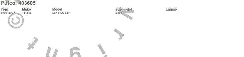 Below is an abreviated list of applications for the Side Marker Lamp Cover. Land Cruiser, Toyota, 2007, 2006, 2005, 2004, 2003, 2002, 2001, 2000, 1999, 1998 more…