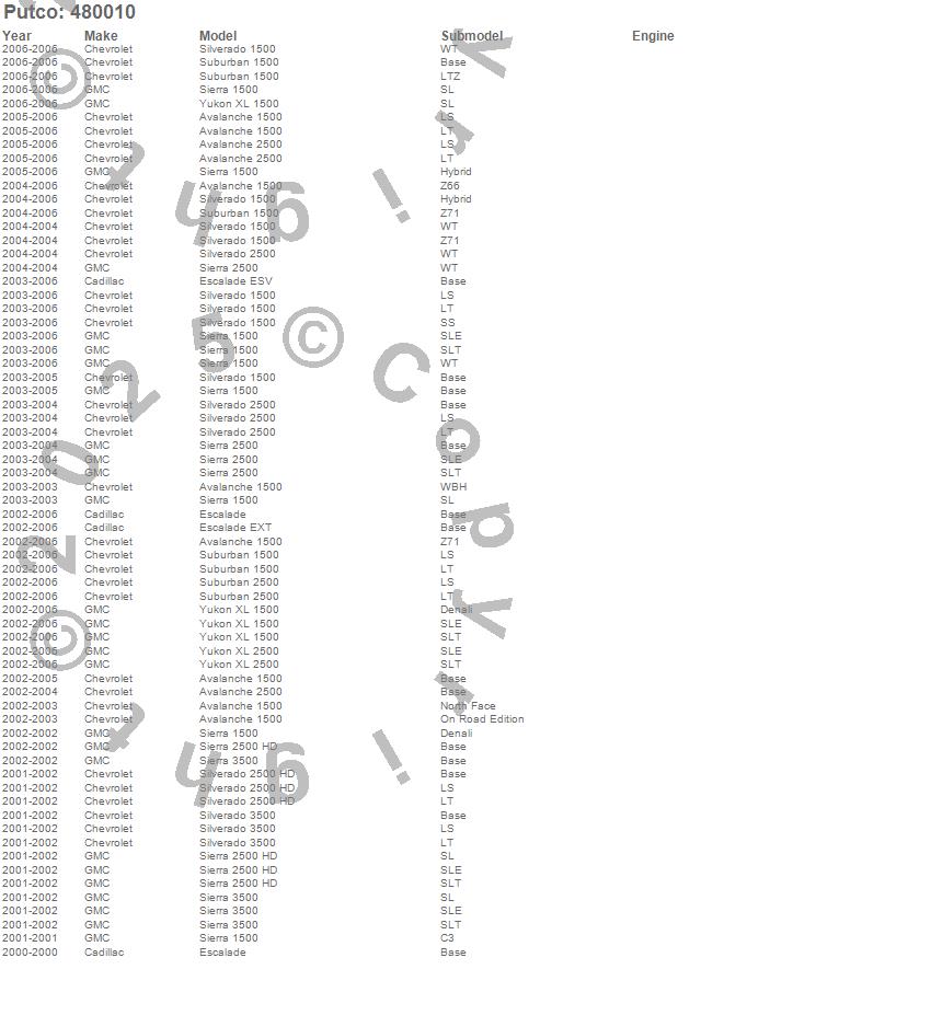 Avalanche 1500, Avalanche 2500, Escalade, Escalade ESV, Escalade EXT, Sierra 1500, Sierra 2500, Sierra 2500 HD, Sierra 3500, Silverado 1500, Silverado 2500, Silverado 2500 HD, Silverado 3500, Suburban 1500, Suburban 2500, Yukon XL 1500, Yukon XL 2500, Cadillac, Chevrolet, GMC more…