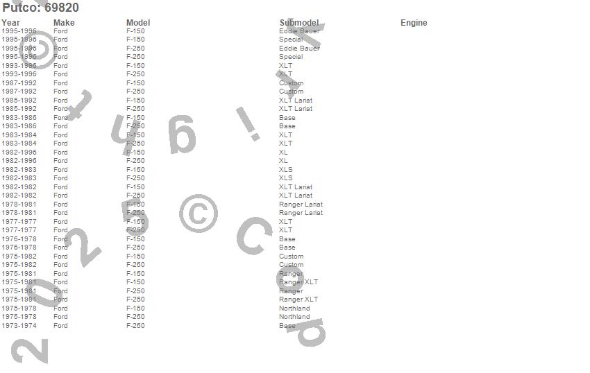 Below is an abreviated list of applications for the Putco Crossrail Side Bed Rail. F-150, F-250, Ford, 1996, 1995, 1994, 1993, 1992, 1991, 1990, 1989, 1988, 1987, 1986, 1985, 1984, 1983, 1982, 1981, 1980 more…