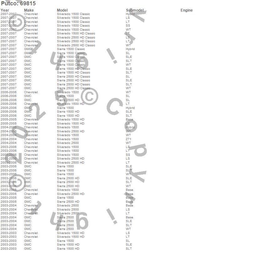 Below is an abreviated list of applications for the Putco Crossrail Side Bed Rail.