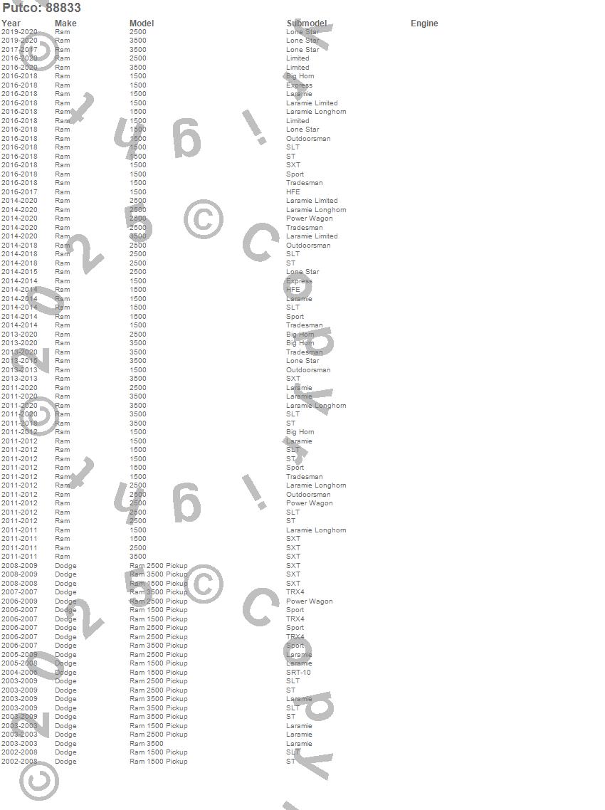 Below is an abreviated list of applications for the Lockers Side Bed Rail. 1500, 2500, 3500, Ram 1500, Ram 2500, Ram 3500, Dodge, Ram, 2015, 2014, 2013, 2012, 2011, 2009, 2008, 2007, 2006, 2005, 2004, 2003 more…