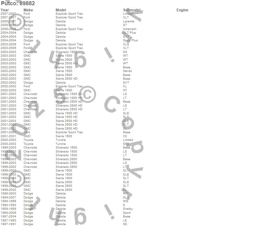Dakota, Explorer Sport Trac, Sierra 1500, Sierra 1500 HD, Sierra 2500, Sierra 2500 HD, Silverado 1500, Silverado 1500 HD, Silverado 2500, Silverado 2500 HD, Tundra, Chevrolet, Dodge, Ford, GMC, Toyota, 2007, 2006, 2005, 2004 more…