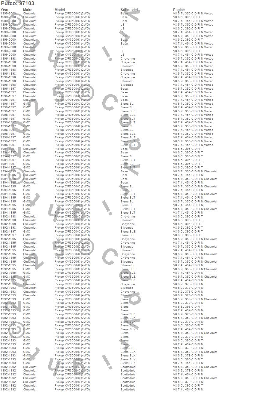 Below is an abreviated list of applications for the Fender Trim. C3500 Pickup, K3500 Pickup, Chevrolet, GMC, 2000, 1999, 1998, 1997, 1996, 1995, 1994, 1993, 1992 more…