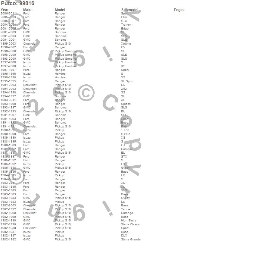 Hombre, Pickup, Ranger, S10 Pickup, S15 Pickup, Sonoma, Chevrolet, Ford, GMC, Isuzu, 2011, 2010, 2009, 2008, 2007, 2006, 2005, 2004, 2003, 2002 more…