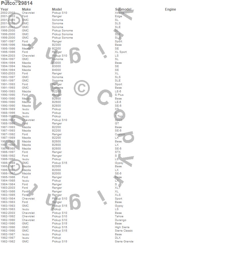 B2000, B2200, B2300, B2600, B3000, B4000, Pickup, Ranger, S10 Pickup, S15 Pickup, Sonoma, Chevrolet, Ford, GMC, Isuzu, Mazda, 2003, 2002, 2001, 2000 more…