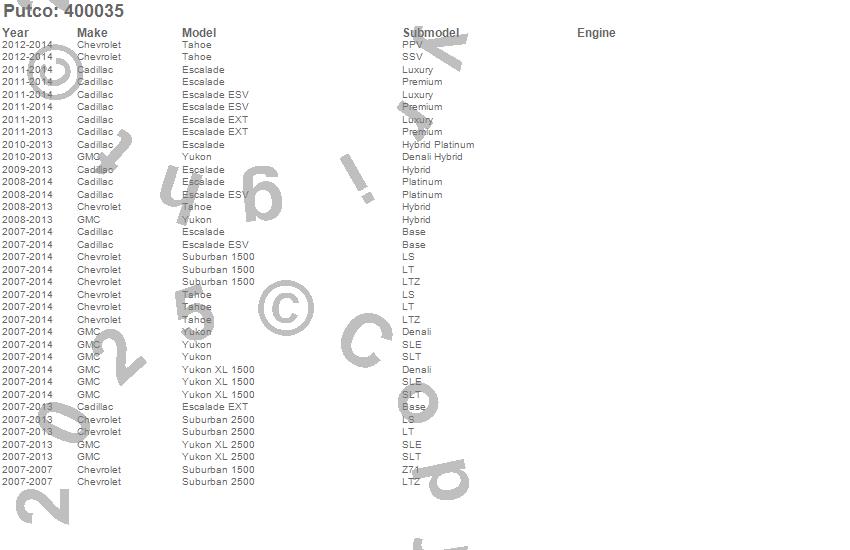 Escalade, Escalade ESV, Escalade EXT, Suburban 1500, Suburban 2500, Tahoe, Yukon, Yukon XL 1500, Yukon XL 2500, Cadillac, Chevrolet, GMC, 2014, 2013, 2012, 2011, 2010, 2009, 2008, 2007 more…