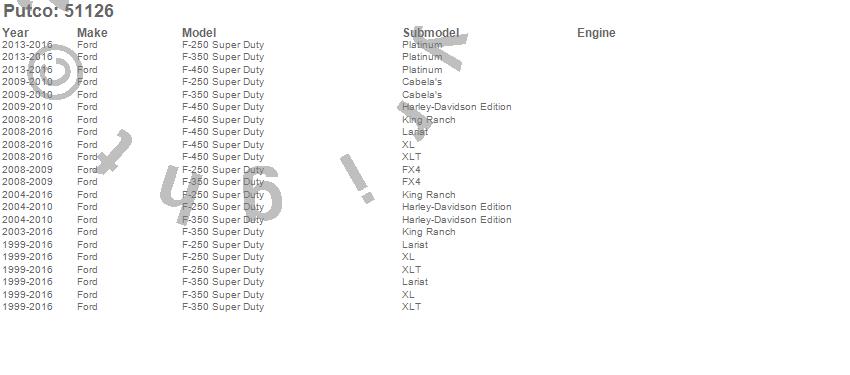 Below is an abreviated list of applications for the Front Bed Protector.