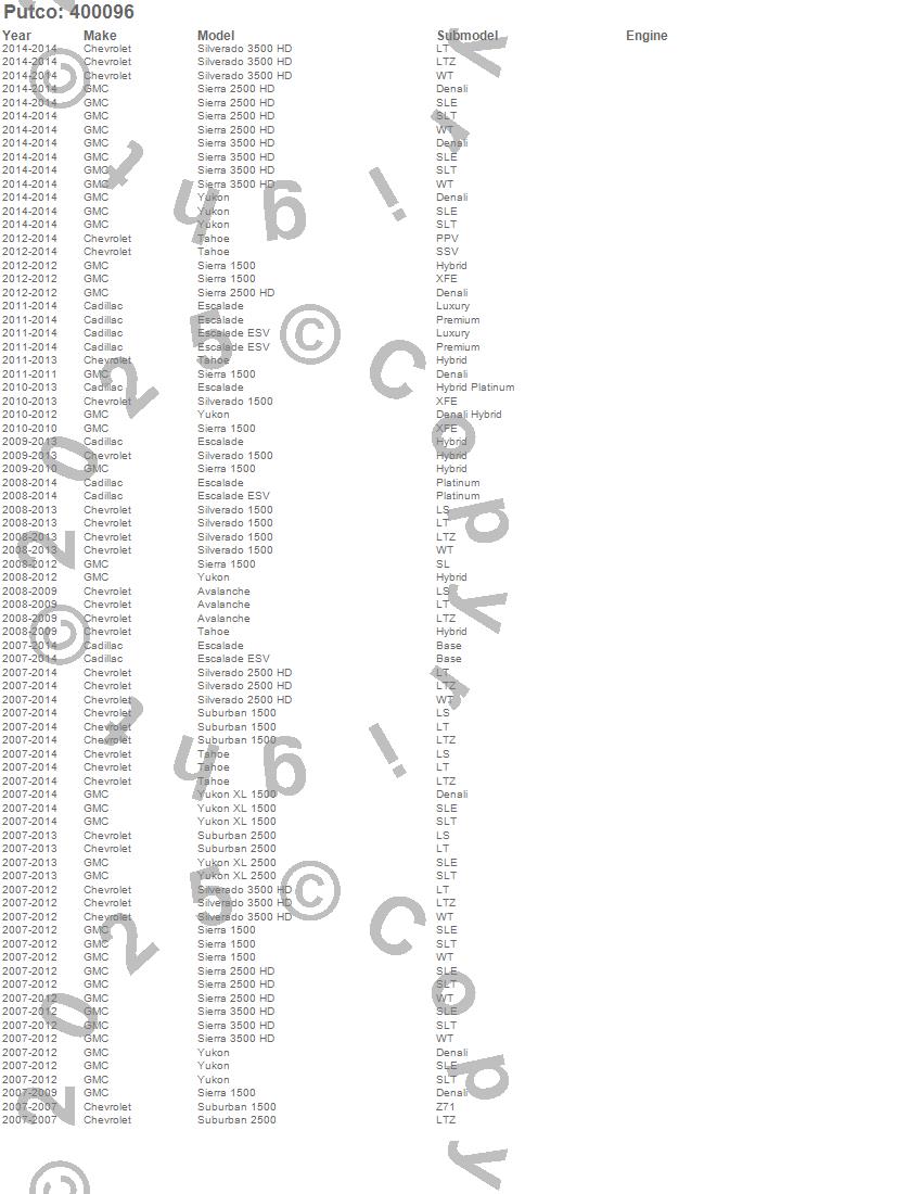 Avalanche, Escalade, Escalade ESV, Sierra 1500, Sierra 2500 HD, Sierra 3500 HD, Silverado 1500, Silverado 2500 HD, Silverado 3500 HD, Suburban 1500, Suburban 2500, Tahoe, Yukon, Yukon XL 1500, Yukon XL 2500, Cadillac, Chevrolet, GMC, 2014, 2013 more…