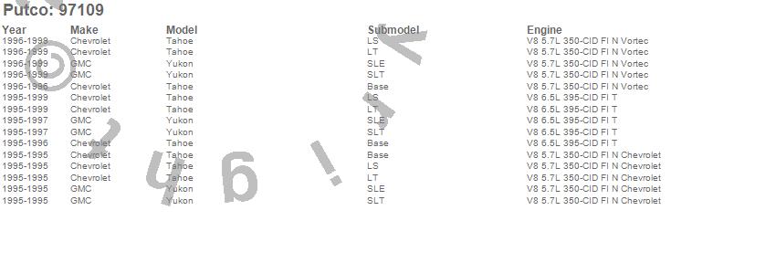 Below is an abreviated list of applications for the Fender Trim. Tahoe, Yukon, Chevrolet, GMC, 1999, 1998, 1997, 1996, 1995 more…