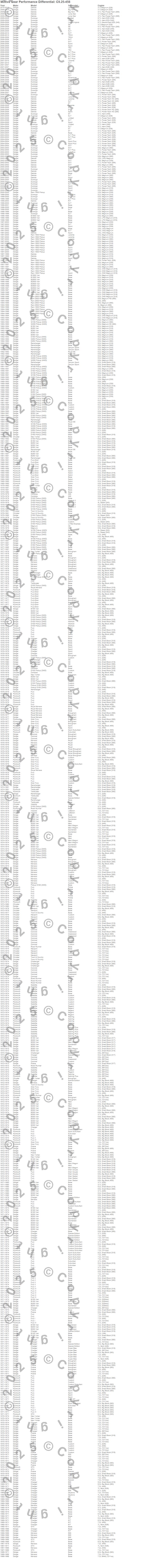 B100 Van, B150, B150 Van, B1500, B200 Van, B250, B250 Van, B2500, B300 Van, B350, B350 Van, B3500, Challenger, Charger, Cordoba, Coronet, D100 Pickup, D150 Pickup, D250 Pickup, D300 Pickup more…