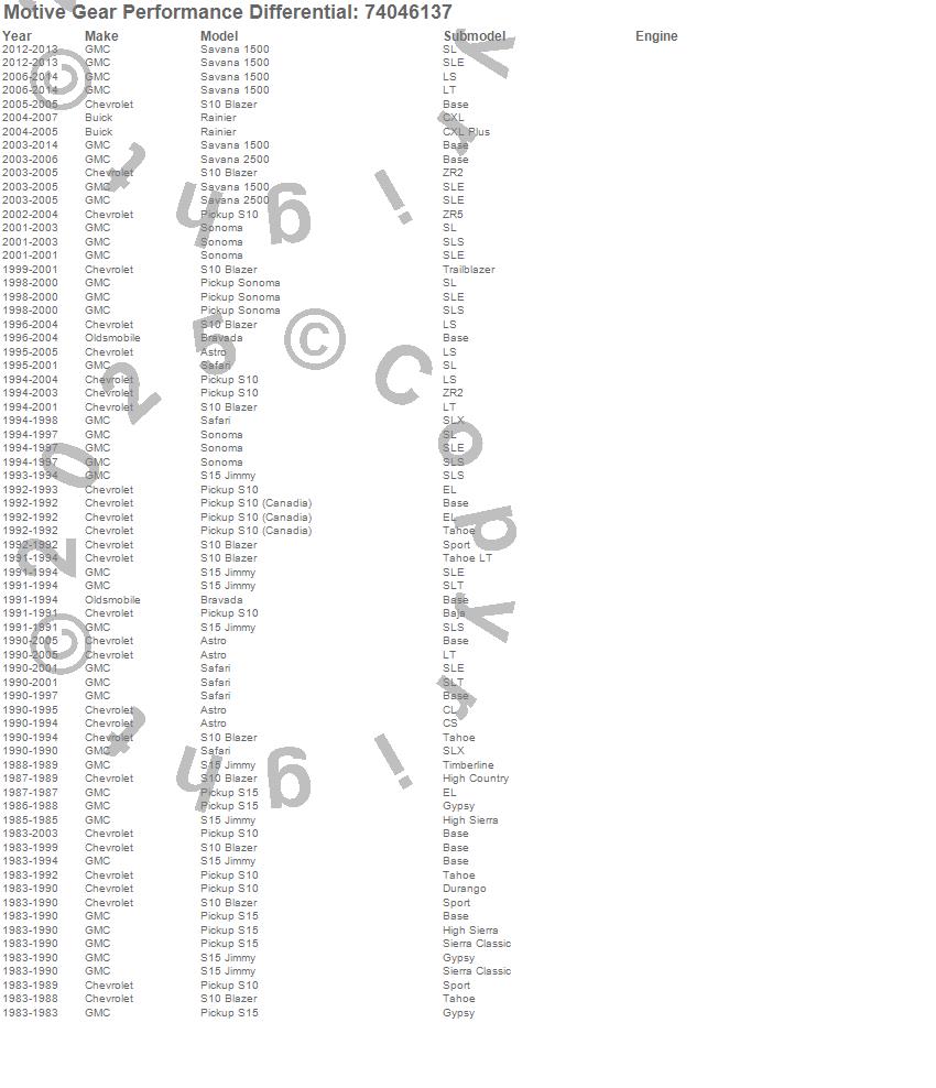 Astro, Bravada, Rainier, S10 Blazer, S10 Blazer (Canadian), S10 Pickup, S15 Jimmy, S15 Pickup, Safari, Savana 1500, Savana 2500, Sonoma, Buick, Chevrolet, GMC, Oldsmobile, 2014, 2013, 2012, 2011 more…