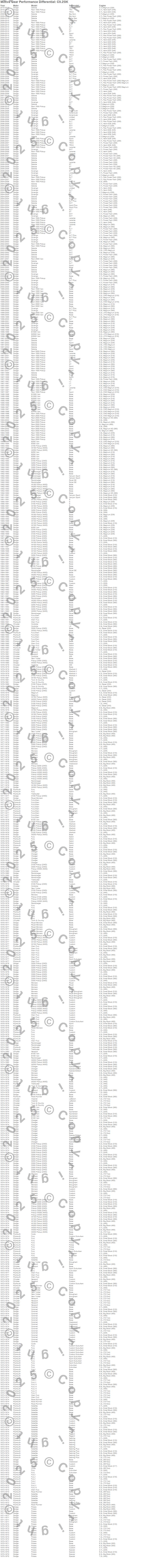 B100 Van, B1500, B250, B250 Van, B2500, B350, B350 Van, B3500, Charger, Cordoba, Coronet, Cuda, D100 Pickup, D150 Pickup, D200 Pickup, D250 Pickup, D300 Pickup, D350 Pickup, Dakota, Durango more…