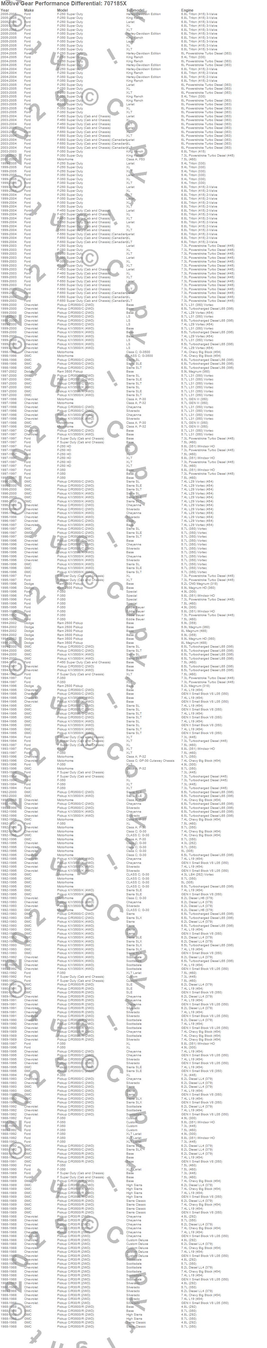 Below is an abreviated list of applications for the Open Differential Internal Kit DANA.