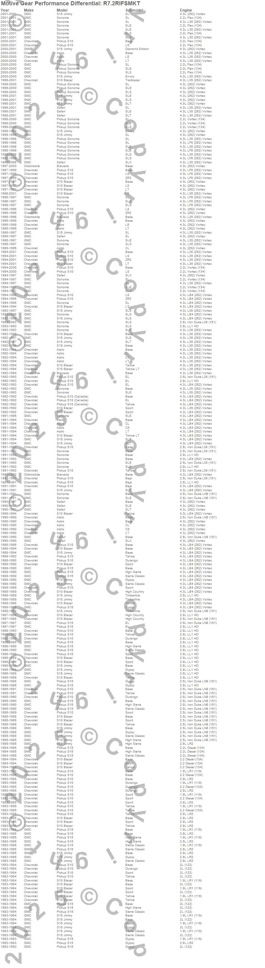 Motive Gear Performance Differential Master Bearing Kit # R7.2RIFSMKT - w/Timken Bearing - Incl. Bearing Kit Plus Ring Gear Bolts/Pinion Shims/Carrier Shims