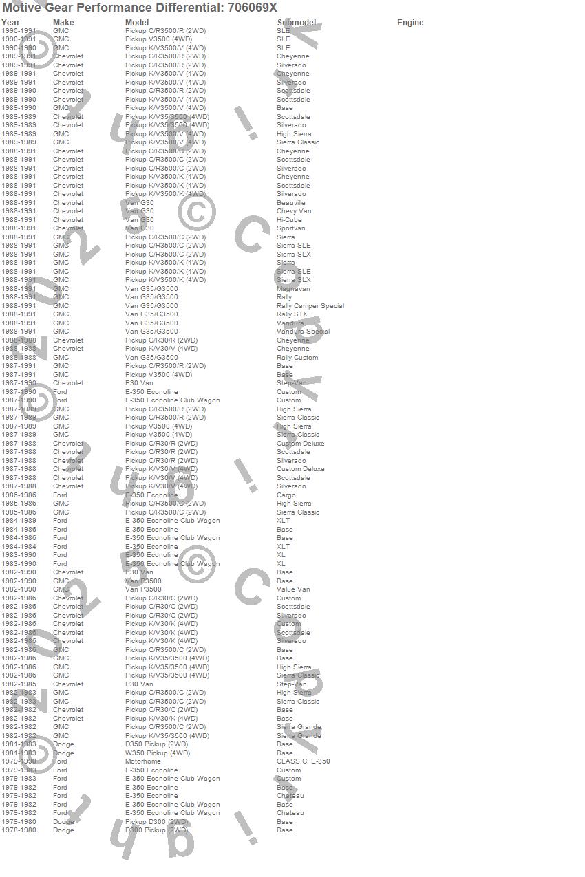 Below is an abreviated list of applications for the Differential Gear Case.
