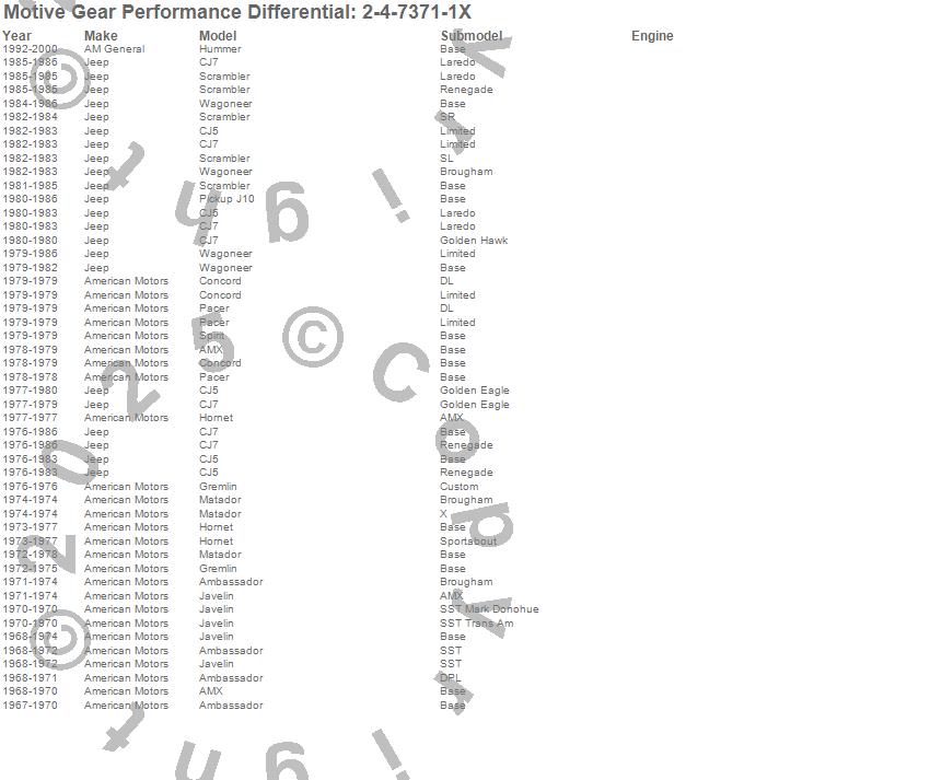 Ambassador, AMX, CJ5, CJ7, Concord, Gremlin, Hornet, Hummer, J10, Javelin, Matador, Pacer, Scrambler, Spirit, Wagoneer, AM General, American Motors, Jeep, 2000, 1999 more…