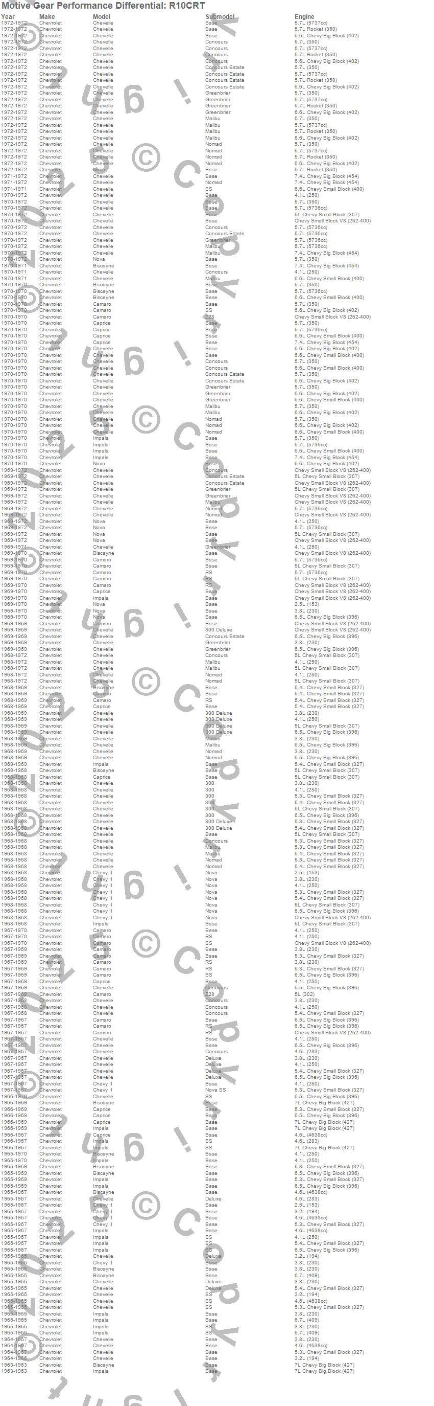 Biscayne, Camaro, Caprice, Chevelle, Chevy II, Impala, Nova, Chevrolet, 1972, 1971, 1970, 1969, 1968, 1967, 1966, 1965, 1964, 1963 more…
