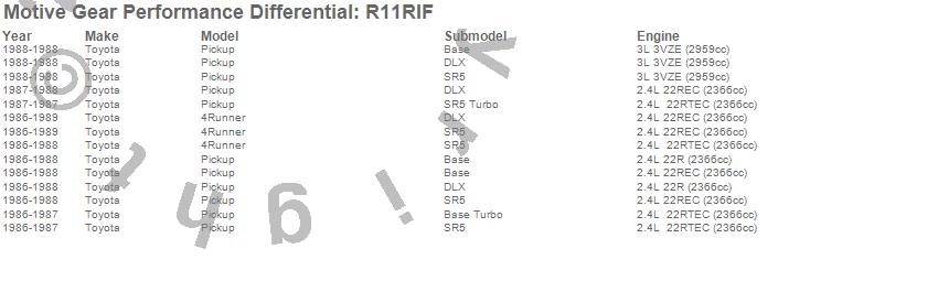 Motive Gear Performance Differential Bearing Kit # R11RIF - w/Bearing - w/IFS - Incl. F/R Pinion-Carrier-Pilot Bearings/Pinion Gear And Nut/Gear Marking Compound/Crush Sleeve/Brush/Loctite/Gasket-RTV