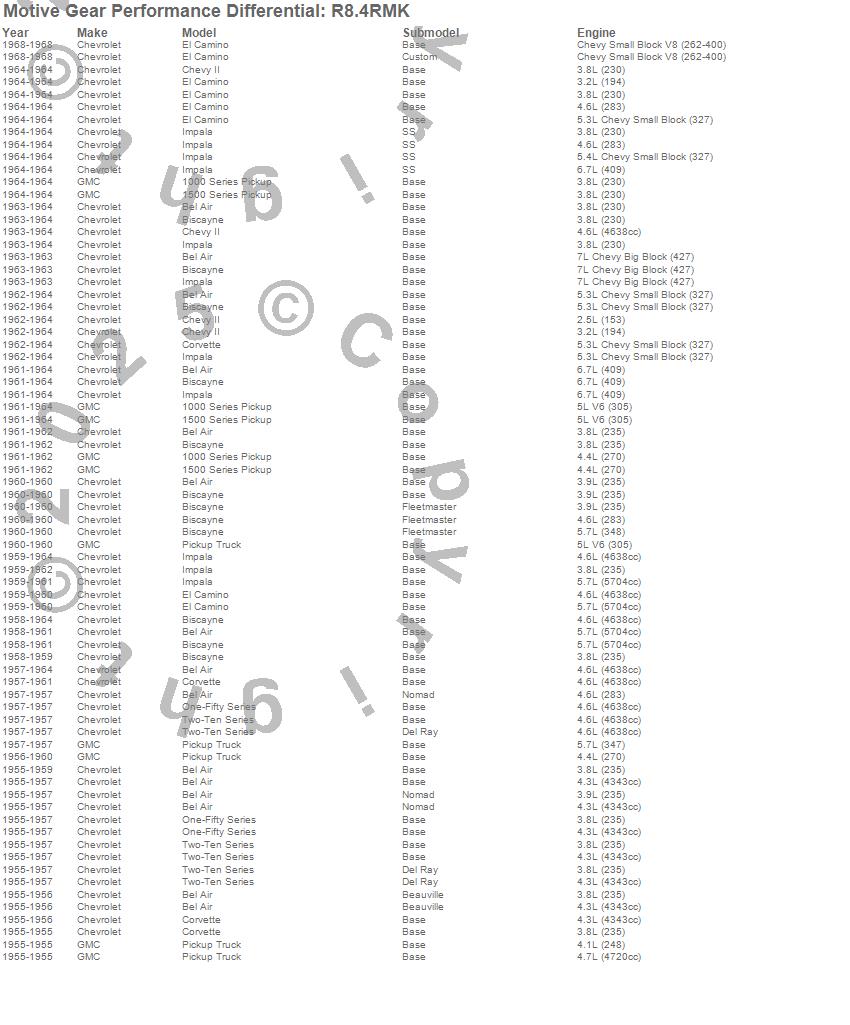 Below is an abreviated list of applications for the Master Bearing Kit.