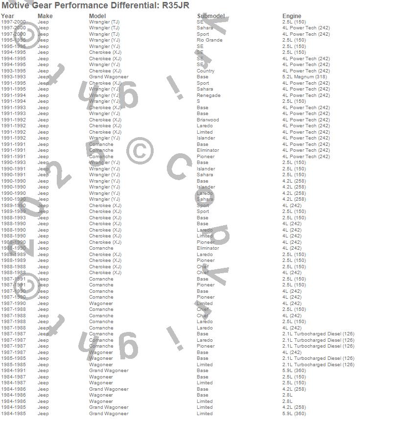 Cherokee (XJ), Comanche, Grand Wagoneer, Wagoneer, Wrangler (TJ), Wrangler (YJ), Jeep, 2000, 1999, 1998, 1997, 1995, 1994, 1993, 1992, 1991, 1990, 1989, 1988, 1987 more…