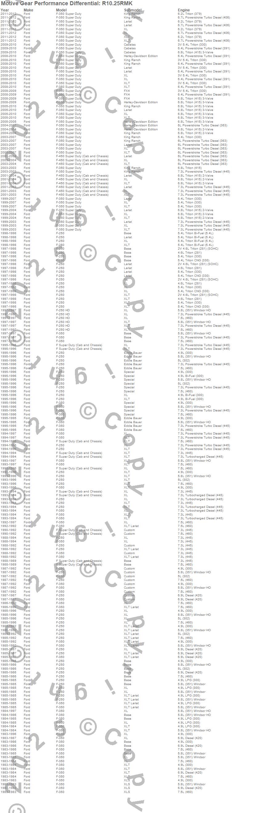 Below is an abreviated list of applications for the Master Bearing Kit.