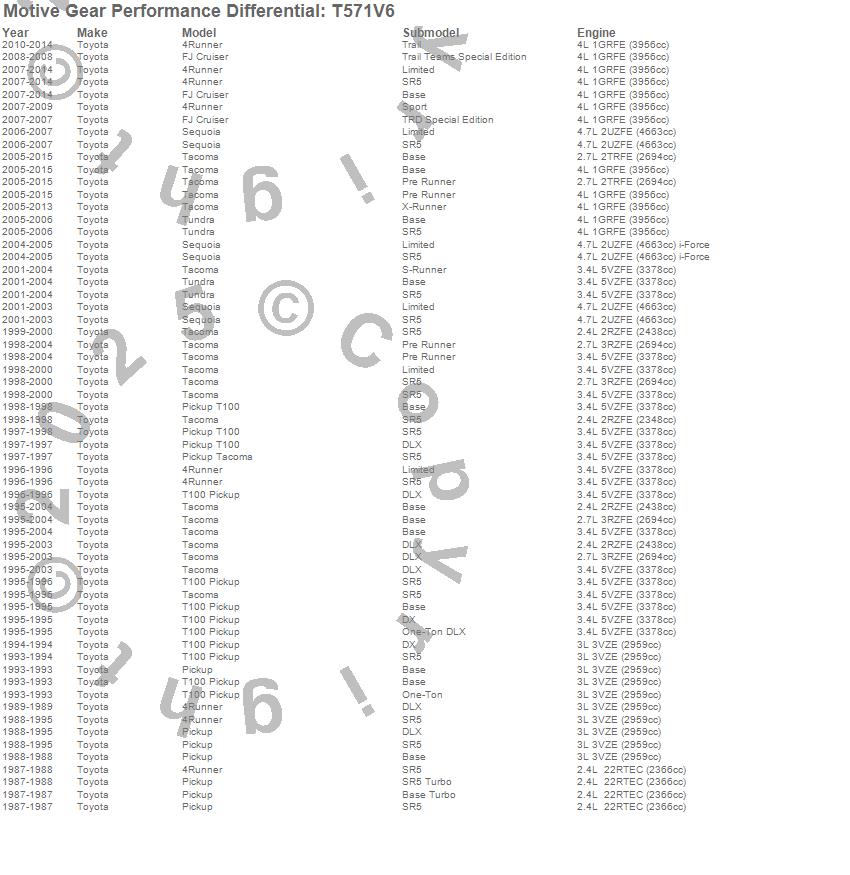 Motive Gear Performance Differential Ring And Pinion # T571V6 - 5.71 Ratio - 40-7 Teeth - Rear 7.8 in./8 in. - w/TRD Off Road Suspension