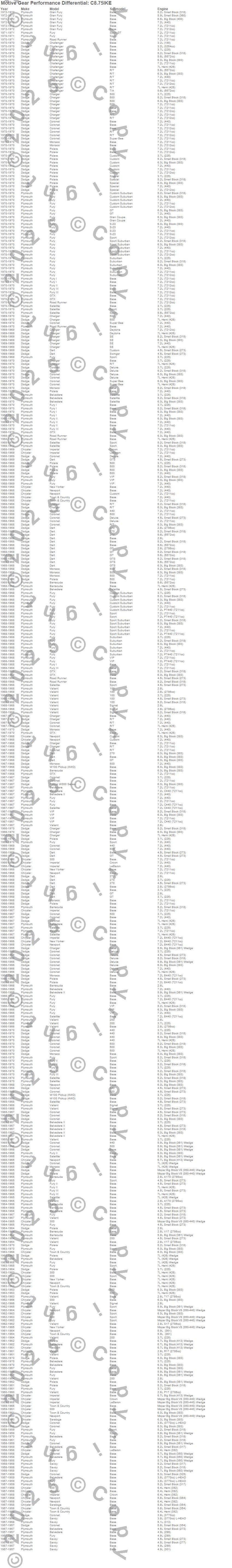 300, Barracuda, Belvedere, Belvedere II, Challenger, Charger, Coronet, Dart, Fury, Fury I, Fury II, Fury III, Gran Fury, GTX, Imperial, Monaco, New Yorker, Newport, Polara, Road Runner more…