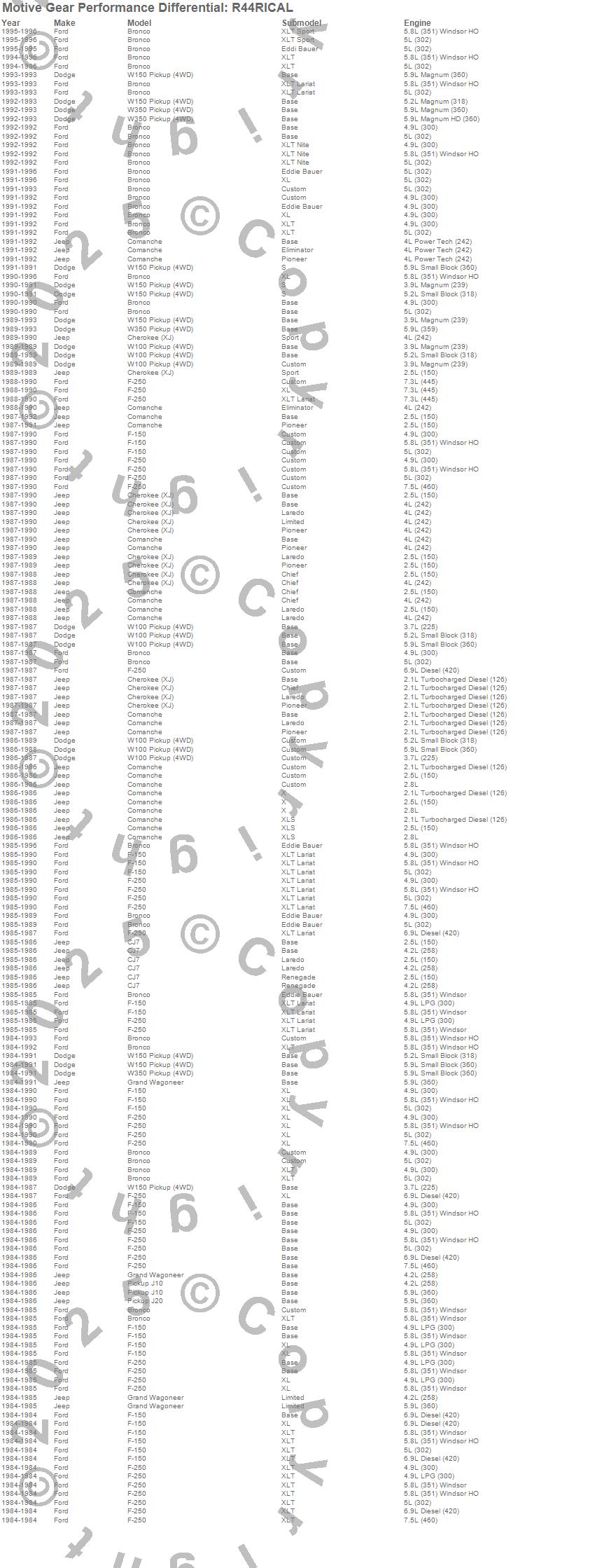 Bronco, Cherokee (XJ), CJ7, Comanche, F-150, F-250, Grand Wagoneer, J10, J20, W100 Pickup, W150 Pickup, W350 Pickup, Dodge, Ford, Jeep, 1996, 1995, 1994, 1993, 1992 more…