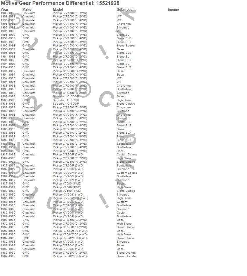 Below is an abreviated list of applications for the Axle Shaft.