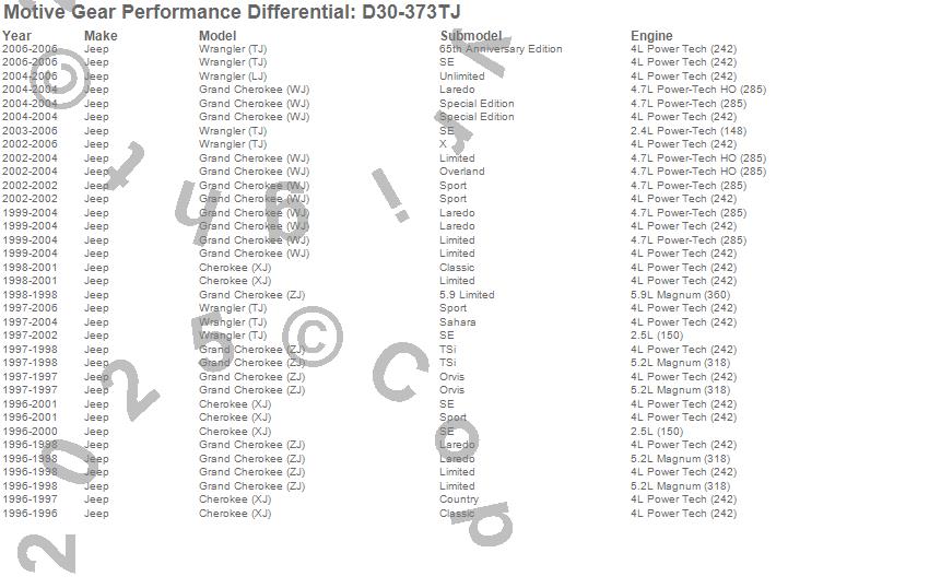 Cherokee (XJ), Grand Cherokee (WJ), Grand Cherokee (ZJ), Wrangler (LJ), Wrangler (TJ), Jeep, 2006, 2005, 2004, 2003, 2002, 2001, 2000, 1999, 1998, 1997, 1996 more…