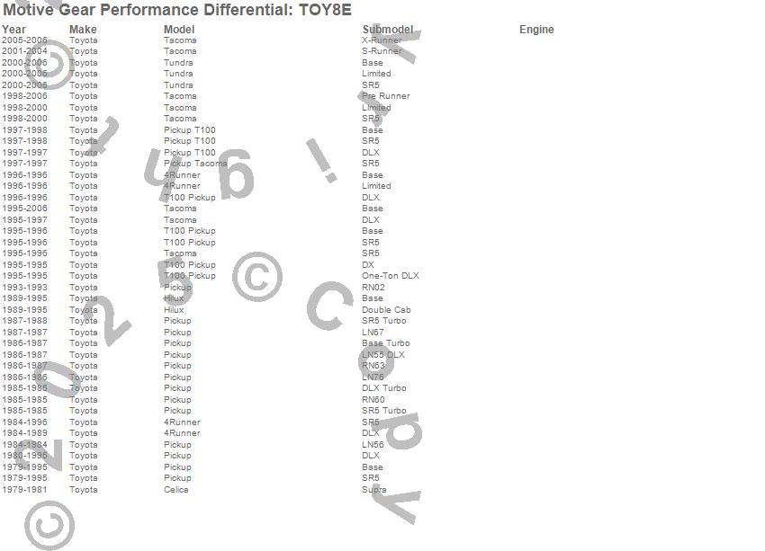 Below is an abreviated list of applications for the Differential Gear Case.
