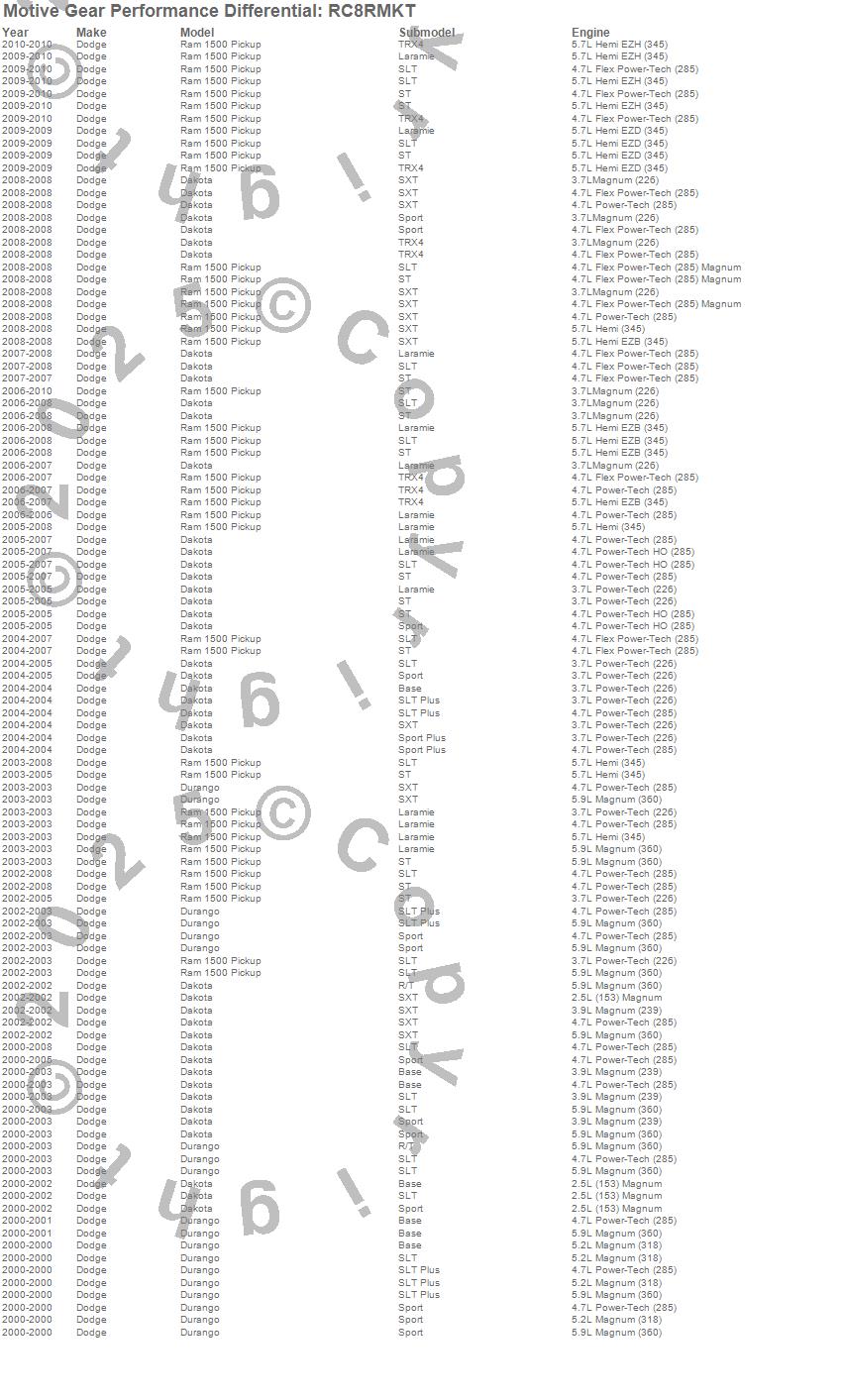 Dakota, Durango, Ram 1500, Dodge, 2010, 2009, 2008, 2007, 2006, 2005, 2004, 2003, 2002, 2001, 2000 more…
