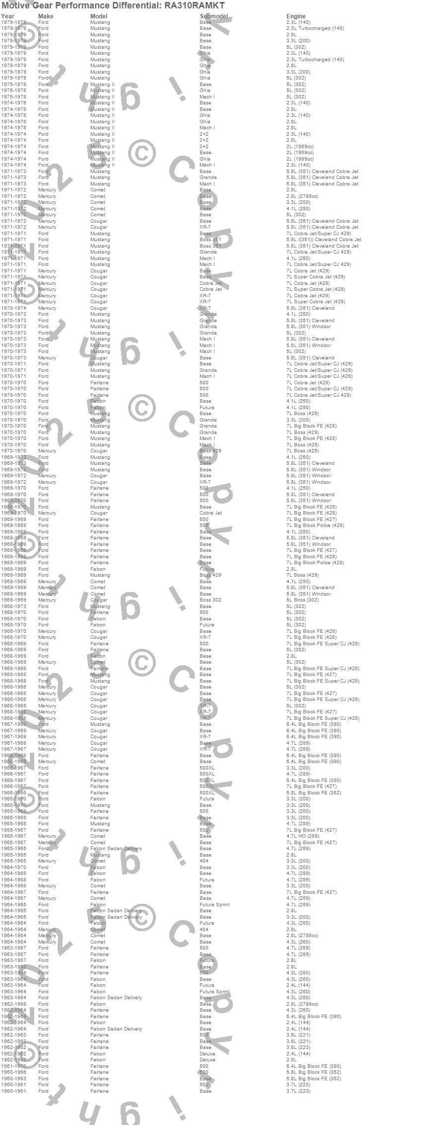 Comet, Cougar, Fairlane, Falcon, Falcon Sedan Delivery, Mustang, Mustang II, Ford, Mercury, 1979, 1978, 1977, 1976, 1975, 1974, 1973, 1972, 1971, 1970, 1969 more…
